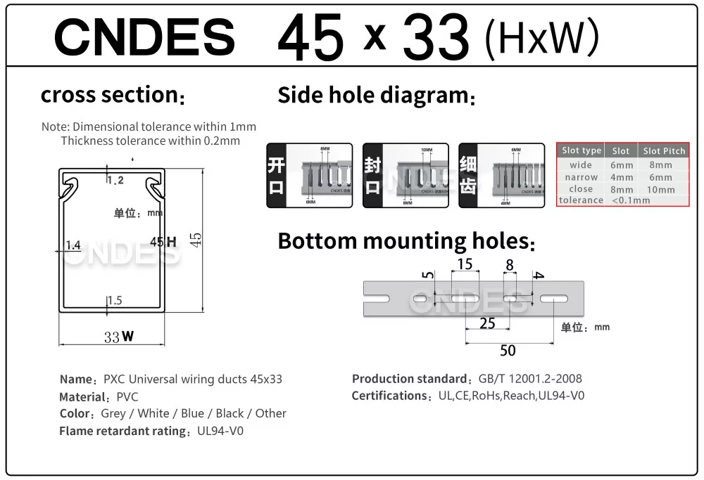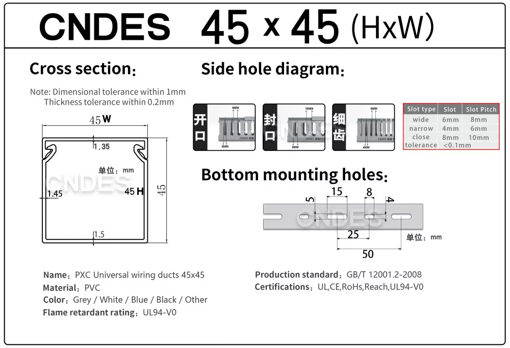 व्यावसायिक निर्माता म्हणून, आम्ही तुम्हाला 45 मिमी-उंची CNDES स्लॉटेड PVC वायर कव्हर डक्ट प्रदान करू इच्छितो. 45*25, 45*33, 45*45 सह.