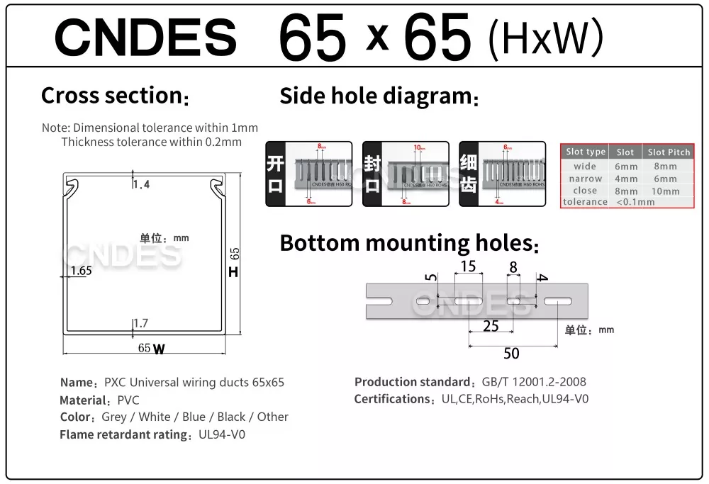 एक व्यावसायिक निर्माता म्हणून, आम्ही तुम्हाला CNDES स्लॉटेड 65×65 PVC केबल रेसवे प्रदान करू इच्छितो.