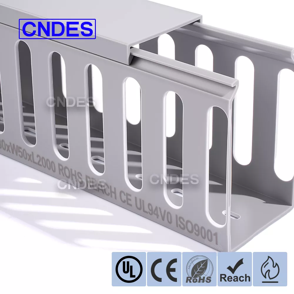 CNDES ही चीनमध्ये स्थित PVC स्लॉटेड केबल ट्रेची व्यावसायिक उत्पादक आहे. येथे, आम्ही आमचे 80×50 स्लॉटेड PVC पॅनेल केबल ऑर्गनायझर सादर करू, जेथे 80*50mm 80mm उंची आणि 50mm रुंदी असलेल्या केबल ट्रेचे प्रतिनिधित्व करतो.