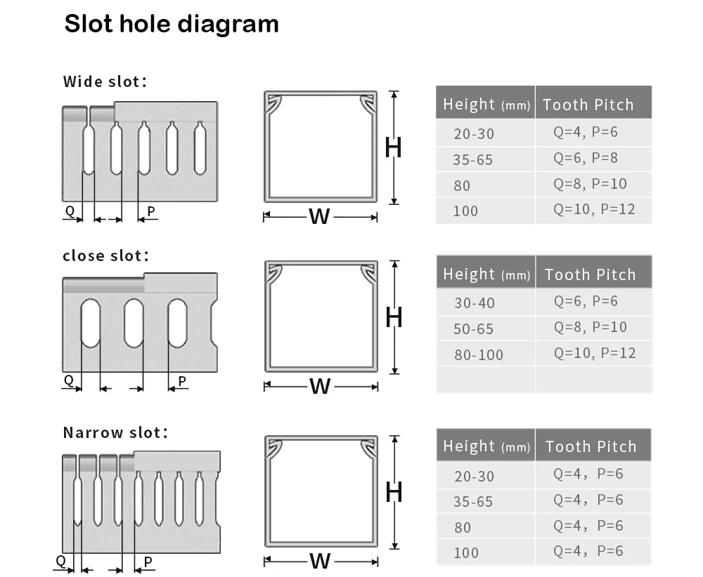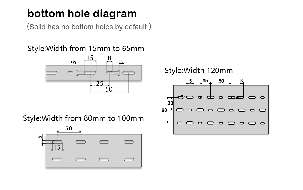 केबल ट्रेची वैशिष्ट्ये उंची * रुंदी म्हणून व्यक्त केली जातात, युनिट mm आहे. प्रथम, केबल ट्रेचा आवश्यक आकार निश्चित करा, जसे की 80 मिमी उंच आणि 40 मिमी रुंद. त्यानंतर, वायरिंगच्या जाडीवर आधारित आउटलेट होलची रुंदी निवडा, एकतर रुंद दात (8 मिमी) किंवा बारीक दात (4 मिमी). हे शिफारसीय आहे की वास्तविक केबलने ट्रेच्या 70% पेक्षा जास्त जागा व्यापू नये.