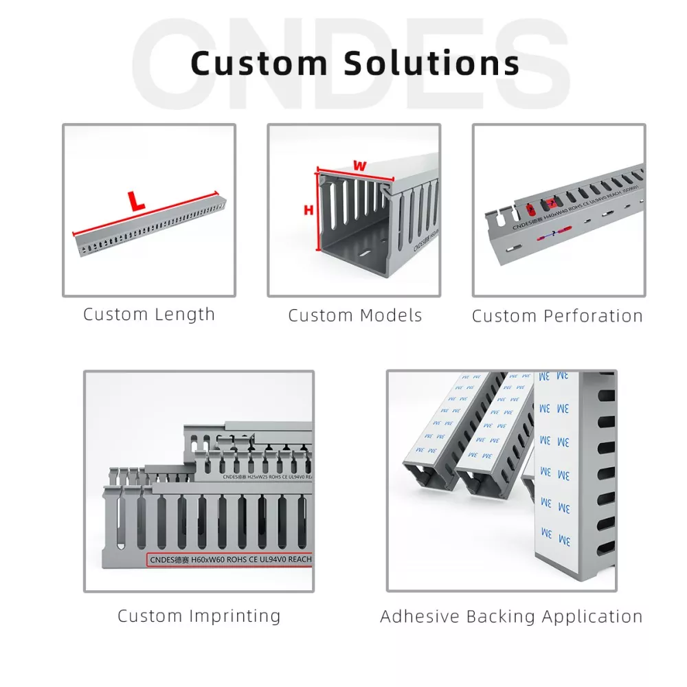 सानुकूलित ब्लॅक स्लॉटेड पीव्हीसी वायरिंग डक्ट निवडताना, UL, CE, आणि ISO सह गुणवत्ता प्रमाणपत्रांचा विचार करण्याची शिफारस केली जाते, जे सातत्यपूर्ण उत्पादन गुणवत्ता आणि स्थिर कामगिरीची हमी देतात. याव्यतिरिक्त, विशेष ऑपरेटिंग वातावरणासाठी, उच्च टिकाऊपणा आणि सुरक्षा आवश्यकता पूर्ण करण्यासाठी अँटी-स्टॅटिक किंवा यूव्ही-प्रतिरोधक सामग्रीसारखे पर्याय निवडले जाऊ शकतात.