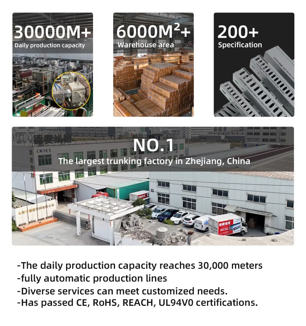 CNDES, चीनमधील ब्लॅक स्लॉटेड पीव्हीसी वायरिंग डक्टचा व्यावसायिक R&D आणि उत्पादन कारखाना म्हणून, मोठ्या प्रमाणात उत्पादन, कठोर ISO गुणवत्ता नियंत्रण आणि OEM/ODM सेवा यामध्ये माहिर आहे. ब्लॅक केसिंग्स सामान्यत: लपविलेल्या वायरिंगची आवश्यकता असलेल्या परिस्थितींमध्ये (जसे की होम थिएटर किंवा कार्यालये) किंवा भिन्न-भिन्न सर्किट्स (वेगवेगळ्या सर्किट्स) मध्ये वापरल्या जातात. लो-व्होल्टेज लाइन्स), ज्यामुळे व्यवस्थापन कार्यक्षमता वाढते.